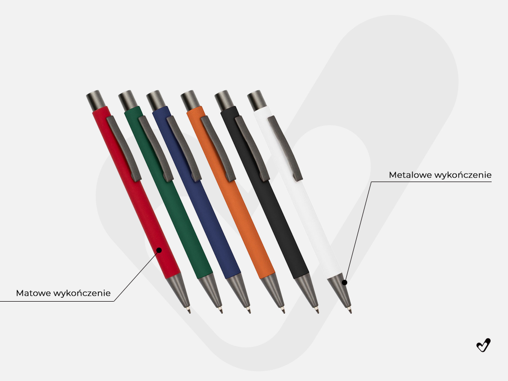 Długopis posiada przyjemne w dotyku matowe wykończenie, które występuje w 6 kolorach.