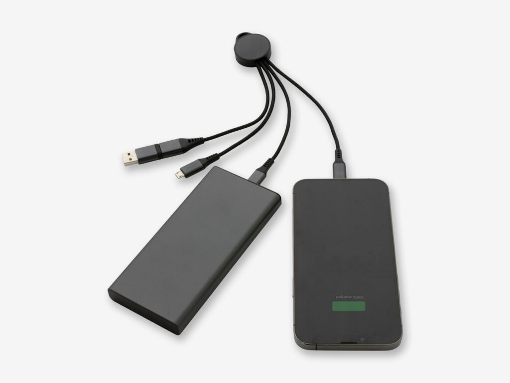 Funkcja szybkiego ładowania 18W – szybka energia, gdy jej potrzebujesz Wszechstronność – pięć końcówek, aby pasował do większości urządzeń Ekologiczne materiały – 68% zawartości z recyklingu dla mniejszego wpływu na środowisko Praktyczny gadżet reklamowy – elegancki i podręczny z możliwością nadruku logo Kabel do ładowania 6 w 1 to nowoczesne rozwiązanie, które łączy funkcjonalność z ekologiczną odpowiedzialnością. Wykonany z materiałów pochodzących z recyklingu, oferuje aż pięć różnych końcówek, w tym USB-C, USB-A, iOS oraz micro USB, co sprawia, że jest wszechstronny i idealny do ładowania różnych urządzeń. Dzięki funkcji szybkiego ładowania 18W, zapewnia efektywne i wygodne zasilanie.