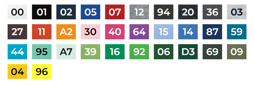 Gramatura: 200 g, 65 % bawełna , 35% poliester (kompozycja może się różnić – kolor 03 – 97 % bawełna, 3 % wiskoza, kolor 12 – 85 % bawełna, 15 % wiskoza)