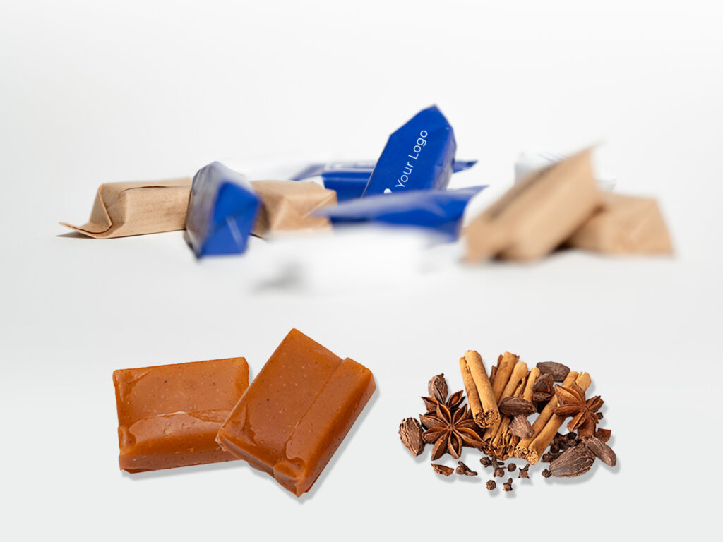 Świąteczny smak – krówki z przyprawą korzenno-piernikową idealnie wpisują się w klimat Bożego Narodzenia Bogactwo smaków – od 40 kg dostępne są m.in. sezamowe, kawowe, słony karmel, truskawkowe, piernikowe i wiele innych Personalizowane opakowanie – etykiety z Twoim logo