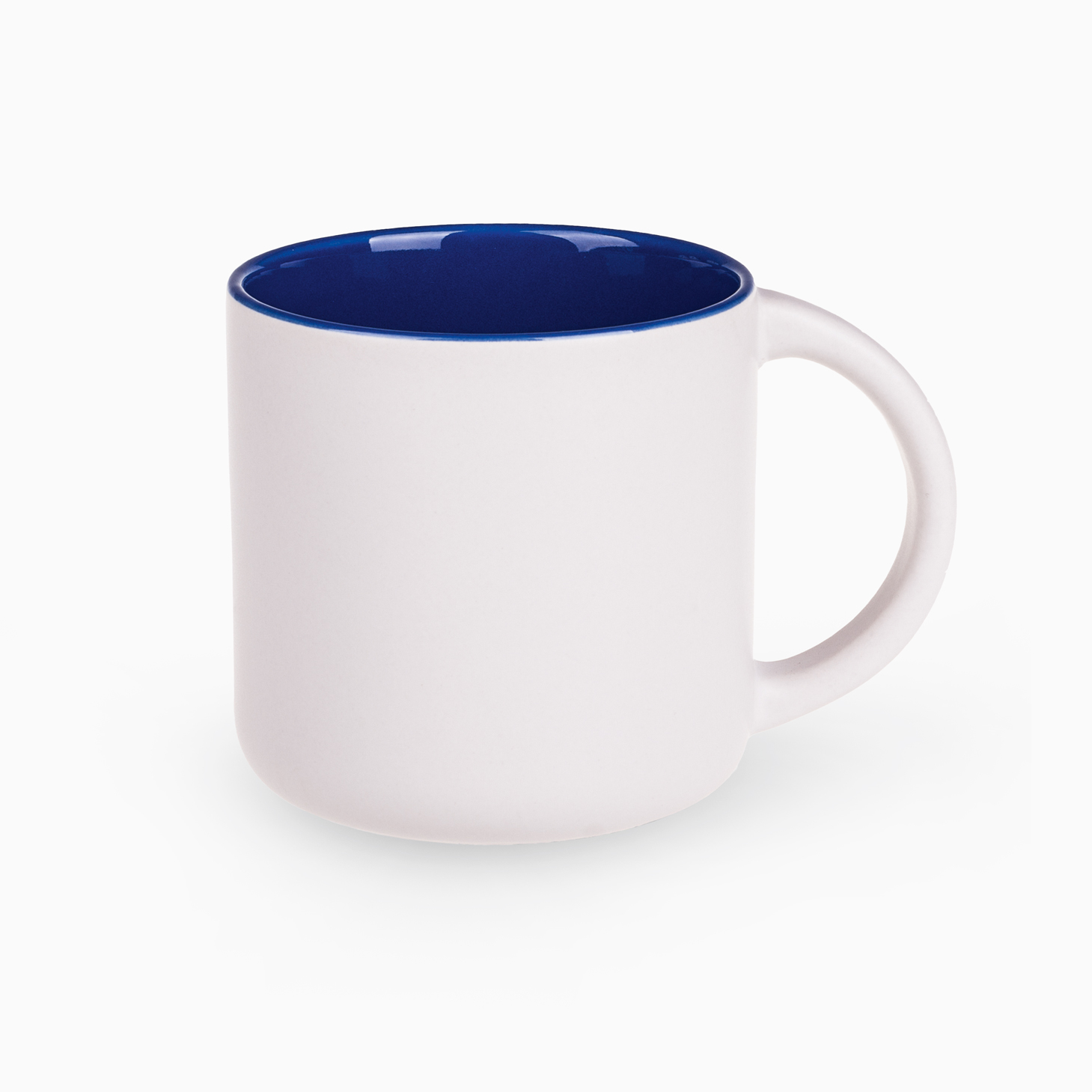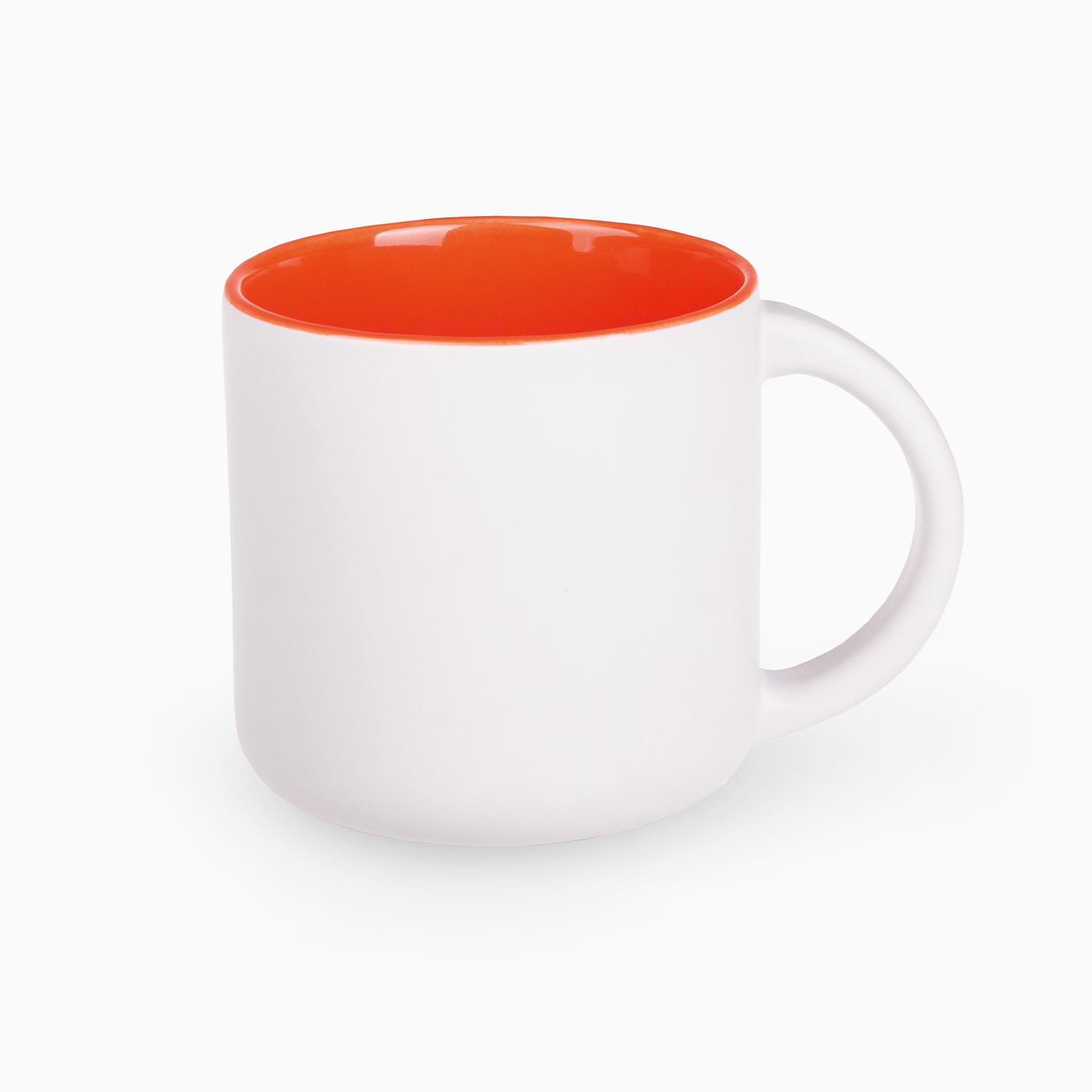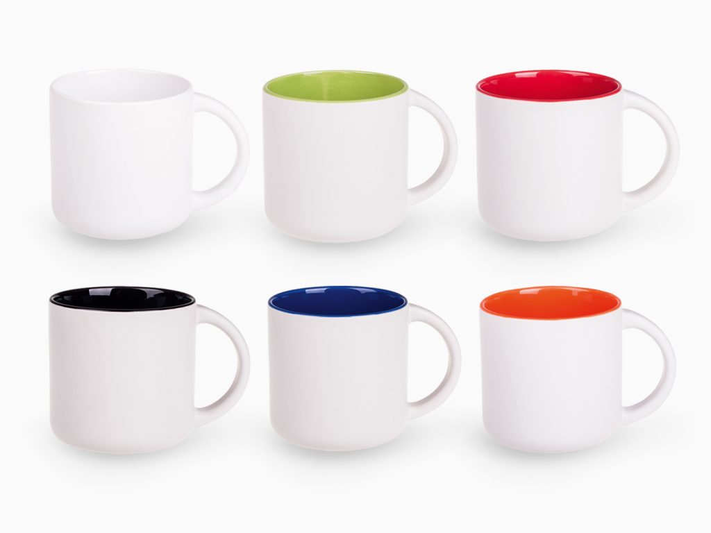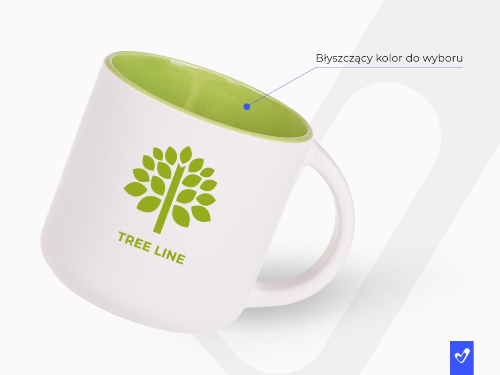 Duży, pojemny kubek Duże pole nadruku Nowoczesny design z satynowym wykończeniem Kubek z białym, matowym szkliwem na zewnątrz i kolorowym, błyszczącym wnętrzem. Proste, cylindryczne ścianki umożliwiają nanoszenie bardzo dużych i rozbudowanych nadruków reklamowych. Cechą charakterystyczną tego fasonu jest niepowtarzalny kształt uchwytu. Kubek o bardzo dużej pojemności.