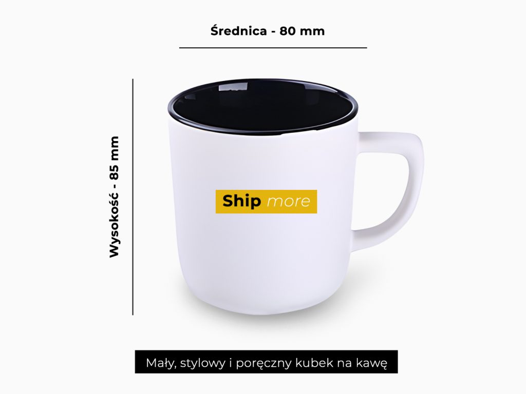 Nowoczesny, lekki design Dostępny w wielu kolorach Elegancka, satynowa powierzchnia Mały i poręczny kubek na kawę. Nowoczesna matowa forma popularnego kubka z dużymi możliwościami w zakresie brandingu. Biały bądź czarny satynowy kubek dostępny w 6 wersjach wypełnienia kolorem.