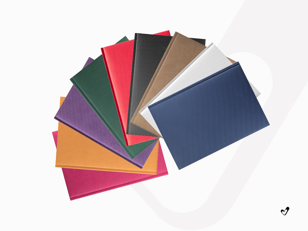 Nowoczesna, syntetyczna oprawa o regularnej, drobnej ale wyraźnej fakturze. Oprawa nieobszyta z możliwością obszycia.