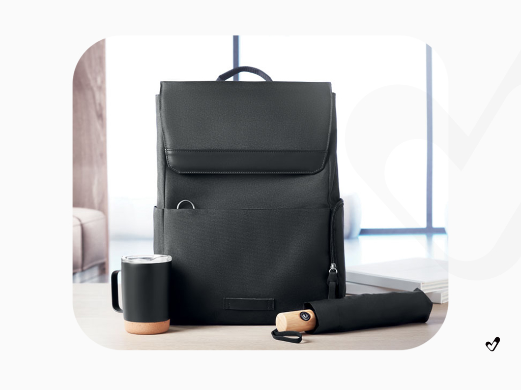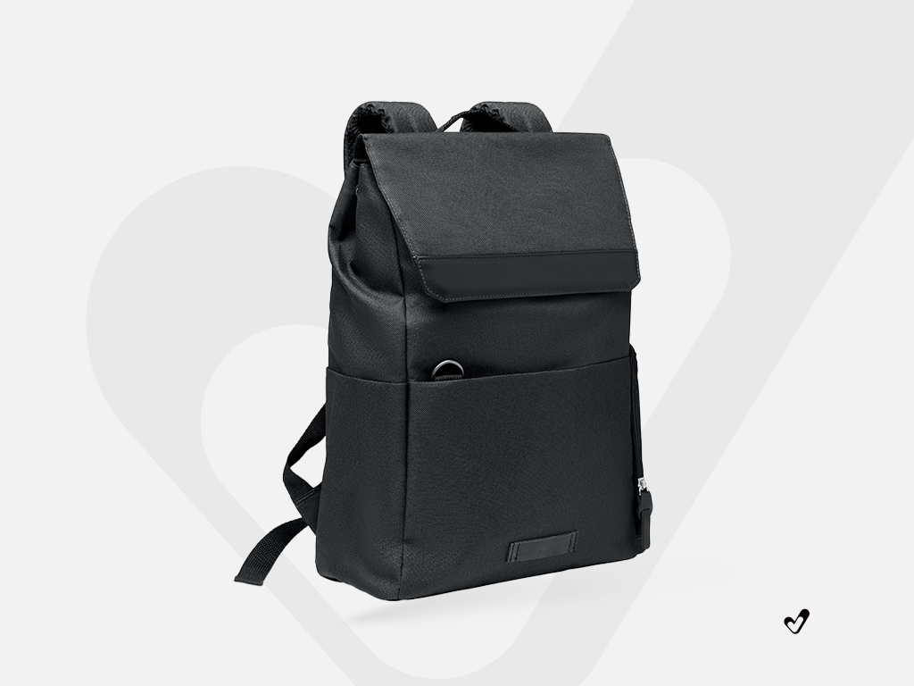 15 calowy plecak 600D RPET na laptopa z magnetycznym zamknięciem na zatrzask. Zabierz swój laptop lub tablet do biura lub w inne miejsce w tym stylowo wyglądającym plecaku. Komora na laptopa jest wyściełana dla dodatkowej ochrony i bezpieczeństwa podczas transportu. Posiada przednie kieszenie zapinane na zamek błyskawiczny oraz dwie boczne kieszenie do przechowywania mniejszych przedmiotów, takich jak notatniki lub butelki. Torba wykonana jest z tworzywa PET pochodzącego z recyklingu.